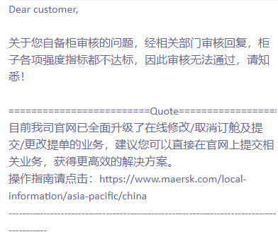 而自备箱的箱体结构、承重、运输安全性等,在订舱时须经过码头、箱管、配载、危险品运输等多部门审核,若某一指标未达标准,任一部门都可拒接。可见,出运申请之难。