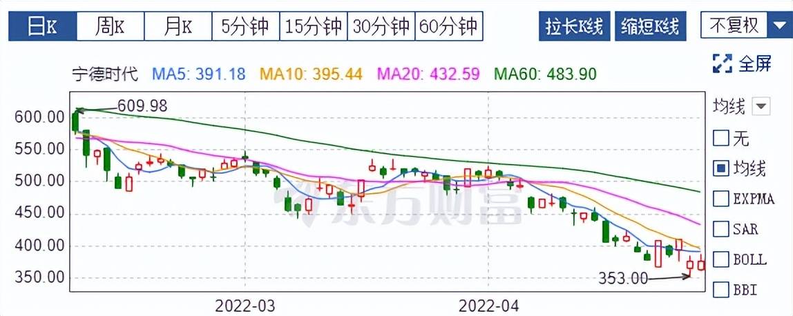 净利润下滑,是宁德时代罕见的情况,业绩果然如市场预期的一样出现大雷。5月5日,宁德时代大幅低开,盘中最大跌幅接近14%,创近1年来新低。截至当日收盘,宁德时代报376元/股,跌幅8.15%,相较于去年12月的历史高点,累计最大跌幅已接近50%。5月6日,宁德时代低开高走,当天涨跌幅为零。